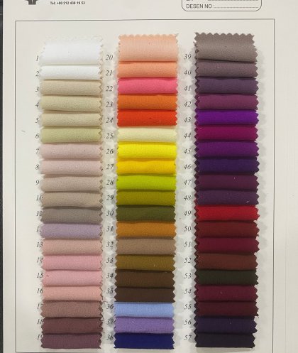 Ayrıca krep kumaşlarımız kırışmaya karşı dayanıklı ve kolay ütülenebilir özelliktedir. Renk doygunluğu yüksek, solmaya dirençli boyalarla üretilmiştir. İrem Tekstil, krep koleksiyonlarında klasik düz renklerin yanı sıra sezon trendlerine uygun pastel ve canlı ton alternatifleri de sunar.