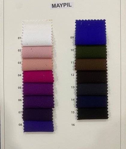 Kumaş, kırışmaya karşı dirençli olup, üretim sürecinde işlenmesi oldukça kolaydır. Tasarımcılar, Maypıl kumaş sayesinde koleksiyonlarına hem şıklık hem de konfor ekleyebilirler. İrem Tekstil, bu kumaş grubunda yüksek kalite ve doğrudan ithalat avantajıyla müşterilerine her zaman rekabetçi fiyatlar sunar.